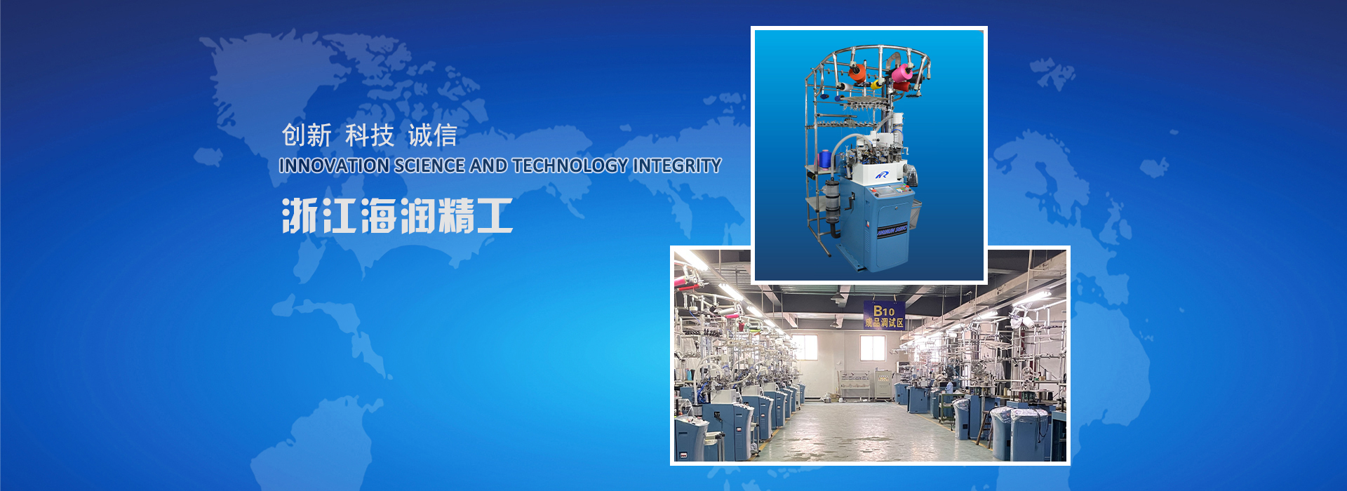 浙江海潤精工機械有限公司成立于2001年,是目前國內較大的電腦襪機整機制造商之一,公司坐落于中國襪業之鄉大 唐鎮,交通便捷,地理位置優越。海潤精工以先進的產品設計和精湛的制造工藝贏得了眾多客戶的青睞,并與之建立 了長期的穩定的業務往